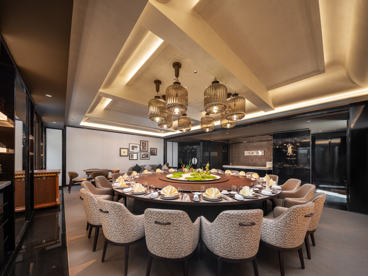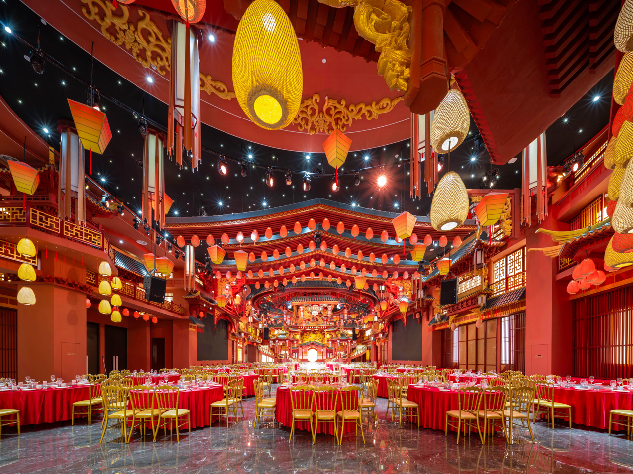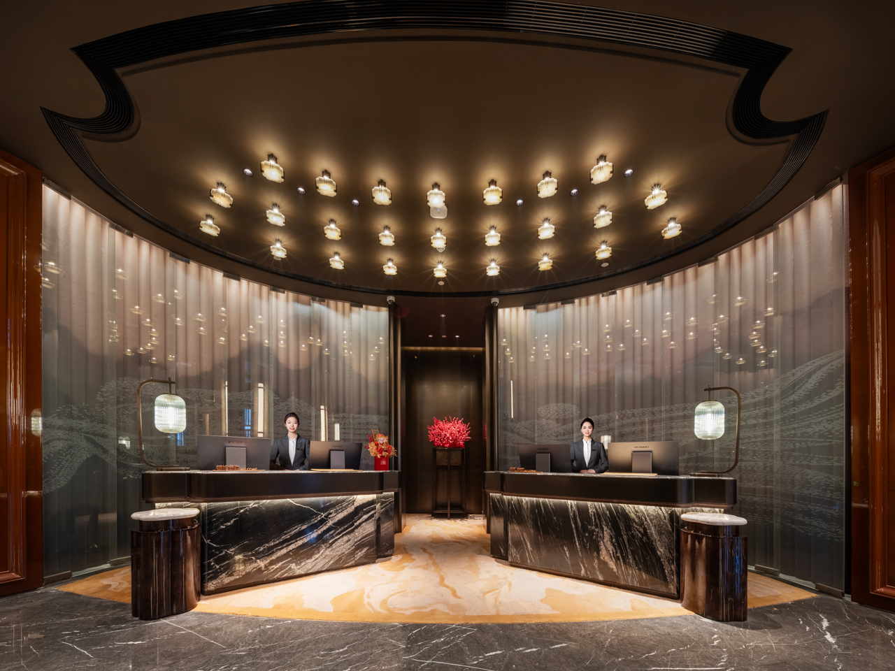 旅馆以盛唐风华和诗礼东方的待客之道为灵感,,,,,,,营造庄重高雅的空间;;;;;诗礼东方,,,,,,,这四个字犹如一扇穿越时光的门,,,,,,,洞开着远古东方文明的壮丽画卷